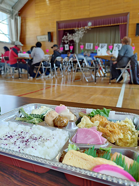 花見弁当、カラオケ、抽選会などで楽しみました。