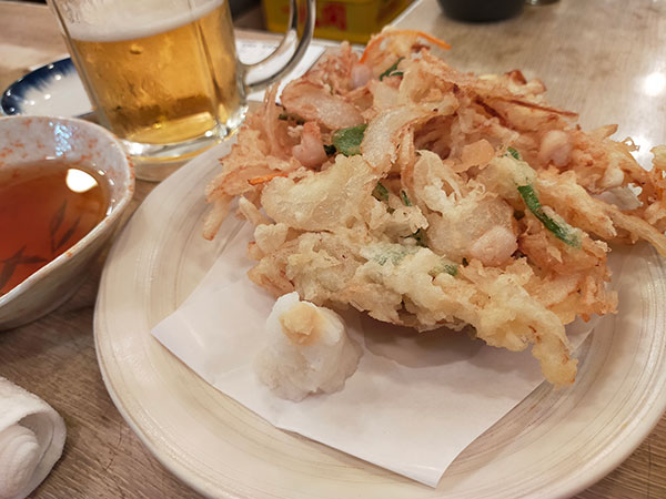 朝から巨大なかき揚げに行きました。