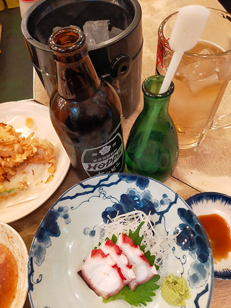生2杯、ホッピーセット、つまみ2種。