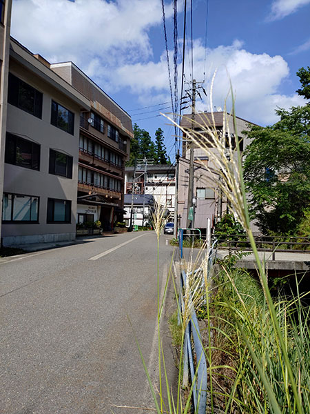 温泉街のススキは穂を出しました。