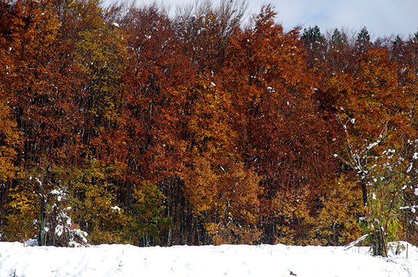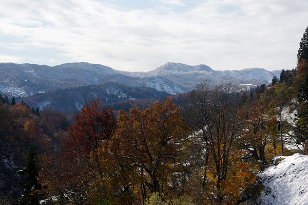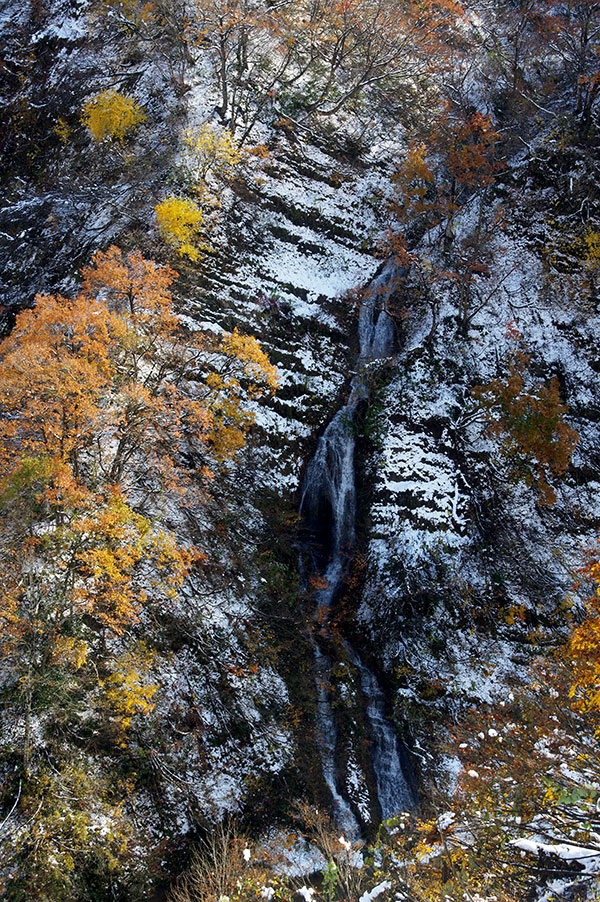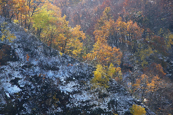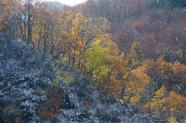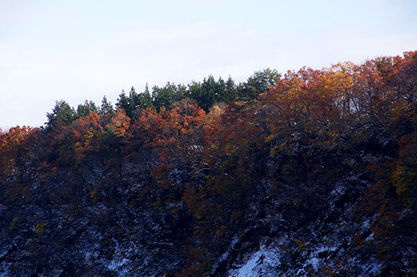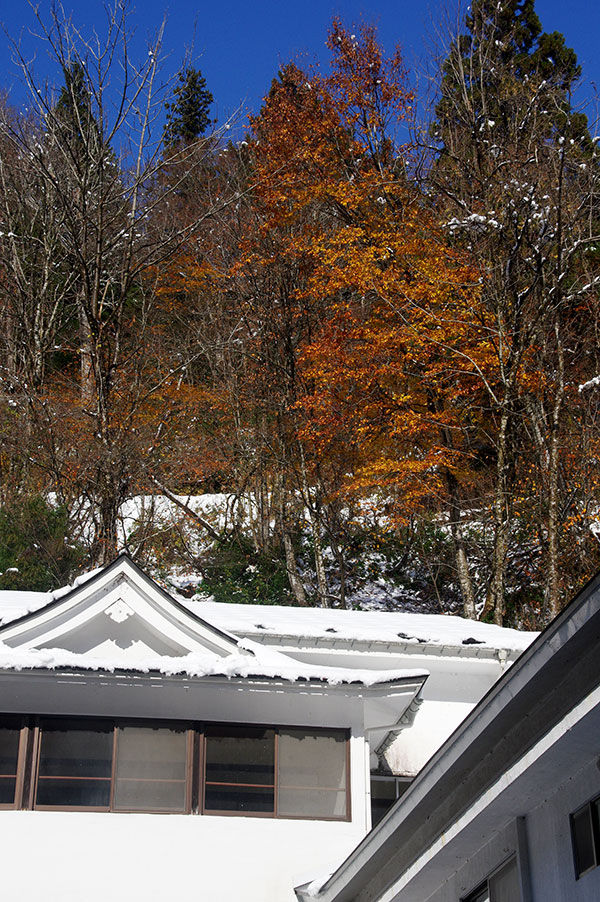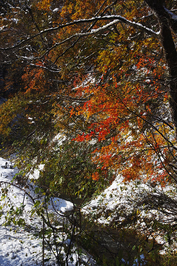 紅葉に雪