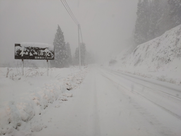 本日の松之山温泉は雪。