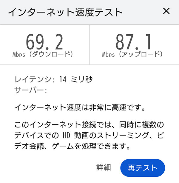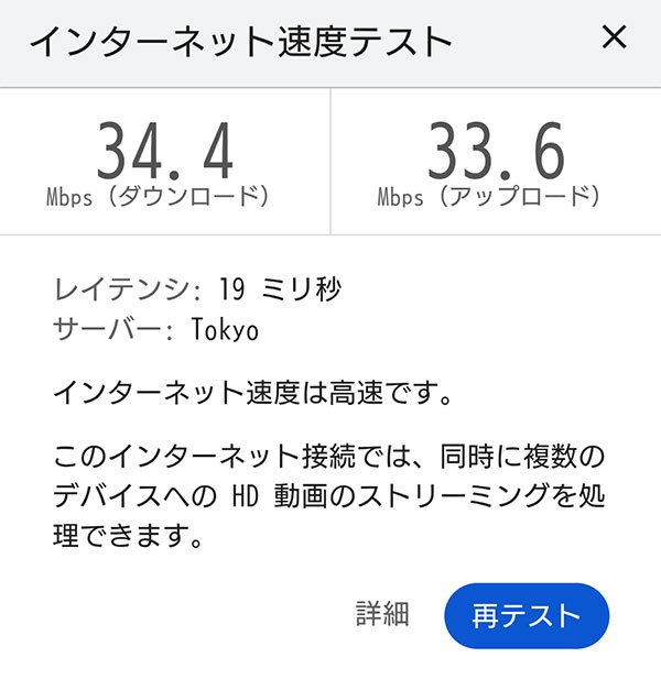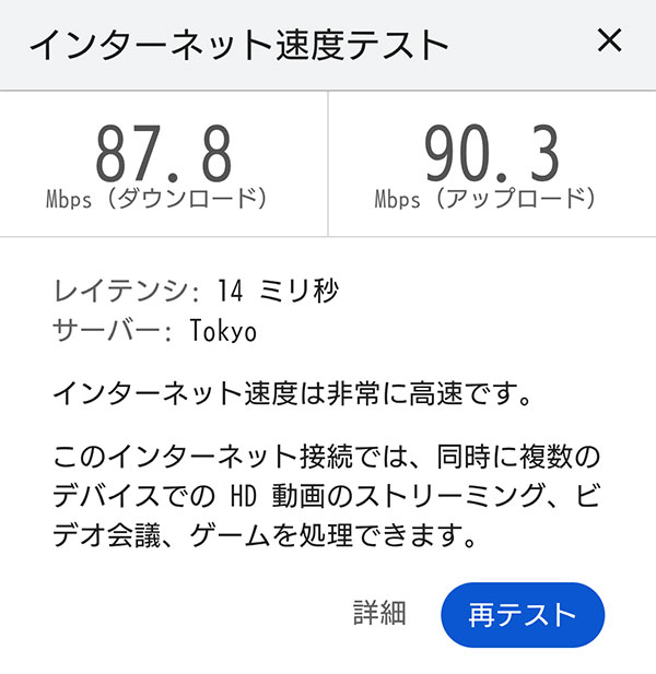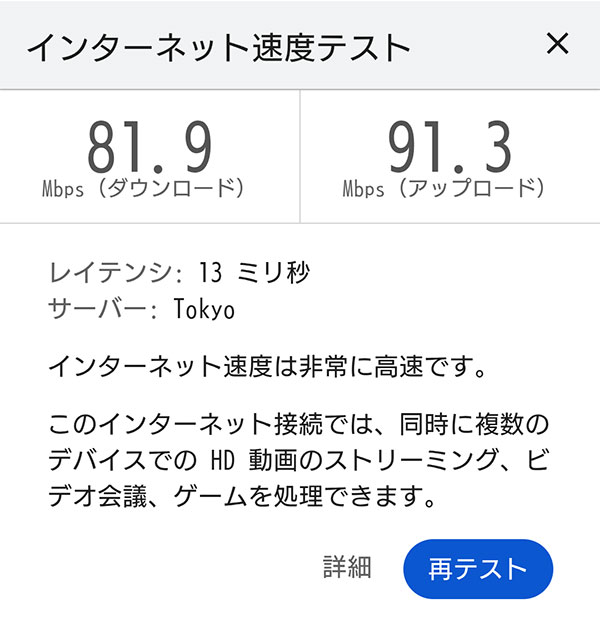 80Mbps以上の数値が計測されました。