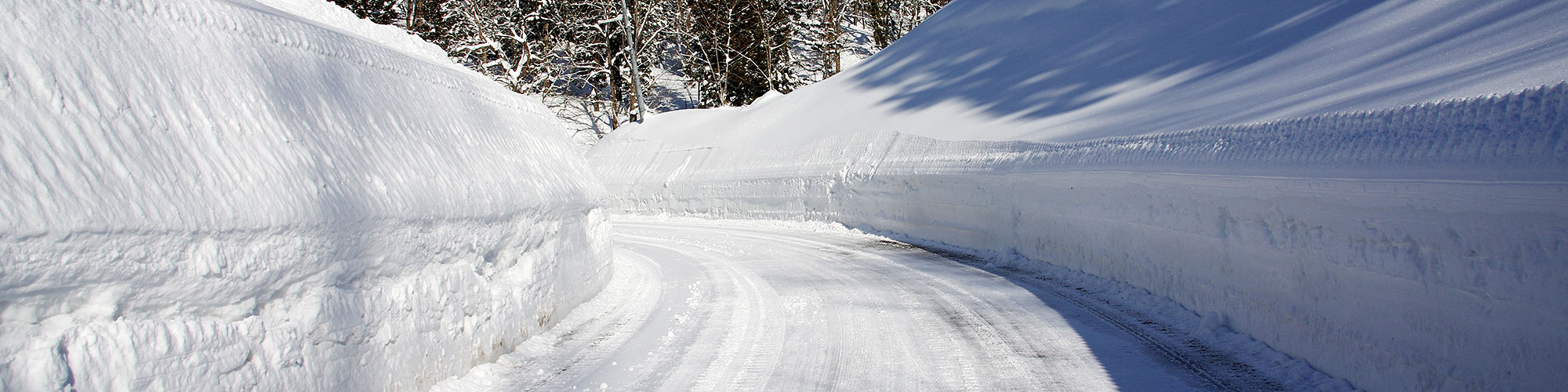 11月中旬から4月中旬まではスタッドレスタイヤもしくはタイヤチェーンを携行すれば間違いありません。生活道路の除雪は新積雪が15cm位になると出動します。24時間体制ではありますが、朝の除雪に重点を置くために夜間の出動は基本的にありません。大雪の際の夜間のドライブは避けたほうが無難です。大寒波の際は積雪もさることながら、風で視界が遮られまったく前方が見えなくなることもあります。そして実は降雪が少ない時期の事故がとても多いです。乾雪よりもシャーベット状の雪のほうがハンドルを取られ、かつ滑りやすいのです。また雪解け水が凍り、ブラックアイスバーンと呼ばれる現象が発生したりします。冬期間の運転はとにかく危険がたくさんありますので、まずは入念に天気予報をご覧になることをお勧めします。そして明るいうちの移動が鉄則です。近年は雪崩が発生することは稀ですが、豪雪の年には注意が必要です。
